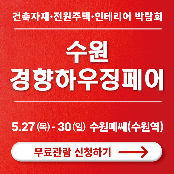 건축자재·전원주택 박람회 ‘수원경향하우징페어’ 건축·인테리어 자재, 전원주택 및 시공사 정보까지 한눈에 볼 수 있는 종합 건축·인테리어 박람회! 지금 사전등록하면 무료관람은 물론 다