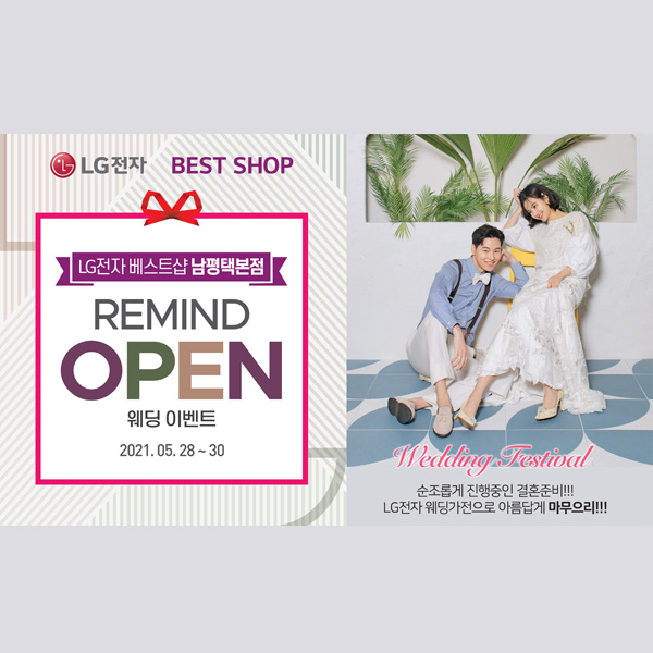 LG전자 평택 가전최대할인 오픈초대전 LG전자 남평택본점 리마인드 OPEN기념 가전 특별 할인혜택 원스톱웨딩&LG전자 남평택본점 OPEN 웨딩가전 최대할인혜택 일시 : [2021.05.28 (금) ~ 2021.05.30 (일)] 장