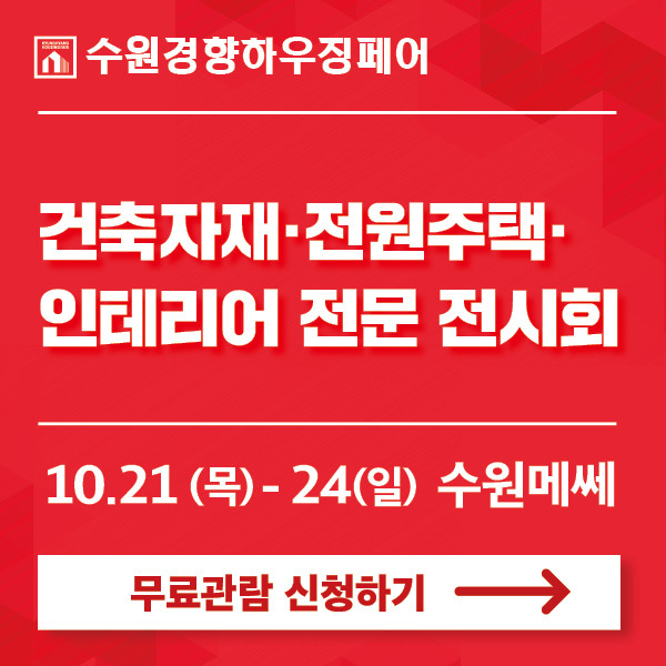 건축·전원주택·인테리어 박람회, '수원경향하우징페어' 무료관람 이벤트! 다양한 건축·인테리어 자재, 전원주택 및 시공사 정보까지 한눈에 볼 수 있는 '수원경향하우징페어'가 10월 21일(목) -