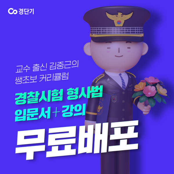안녕하세요. 경찰공무원 1위 경단기입니다. 2022년 경찰시험 과목개편으로, 필수과목이 되어 더욱 중요해진 형사법! 초시생 여러분들은 어떻게 준비하고 계신가요? 출제위원이 실무자에서 교수