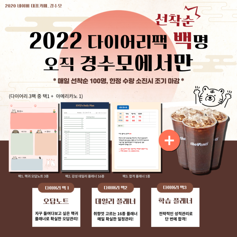 다이어리 신청만 해도 커피 쿠폰 전원증정