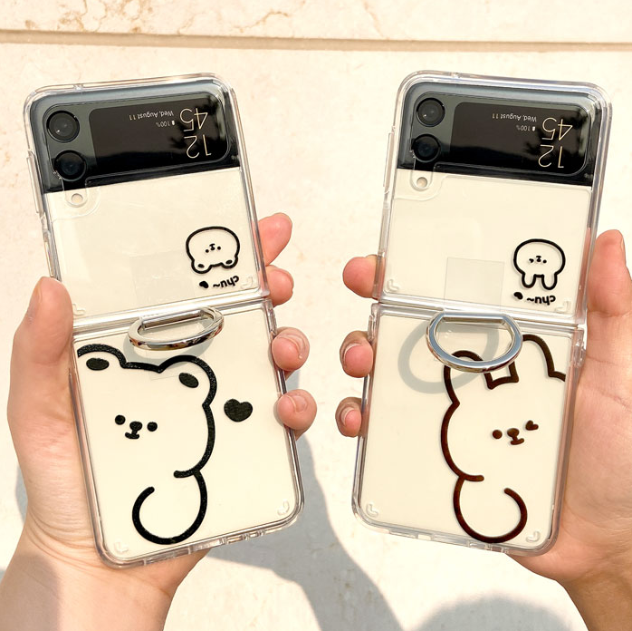 귀여운 곰과 토끼 문양이 그려진 Z플립 젤리케이스와 링 세트상품입니다.