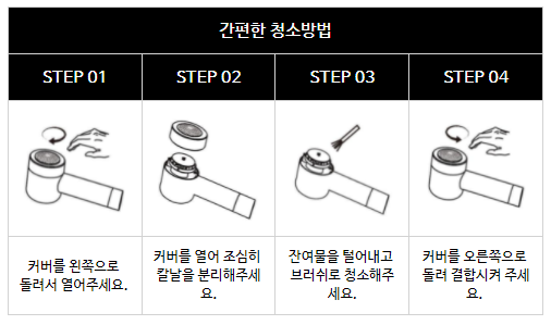 간편하게 헤드를 돌려 분리할 수 있는 구조로 잔여물 제거가 쉬우며
