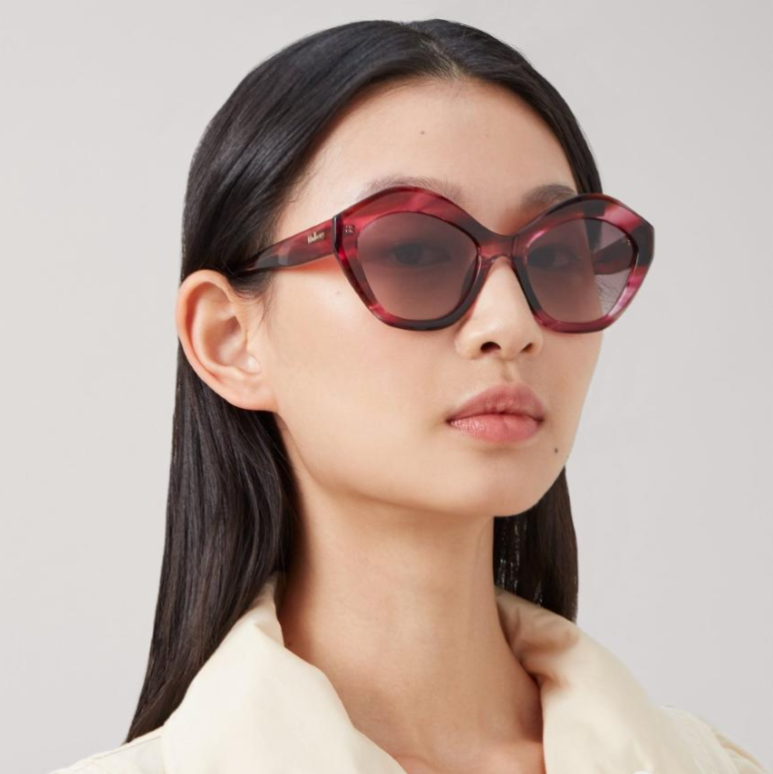 배색 렌즈와 다리에 대비감을 이루는 골드 금속 장식으로 액센트를 완성했습니다.