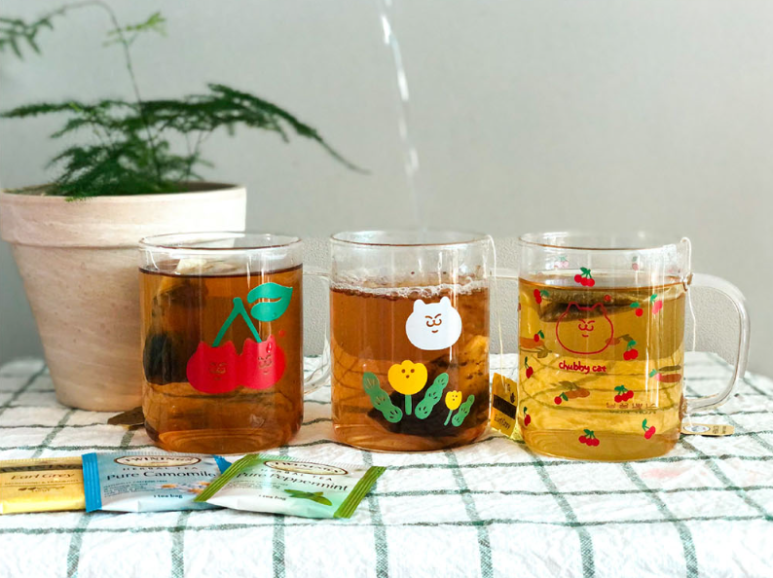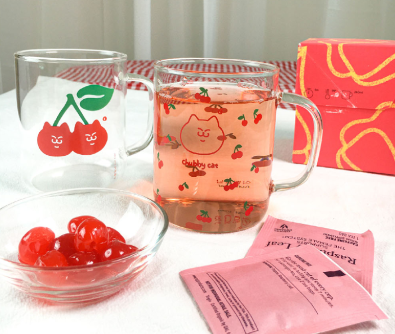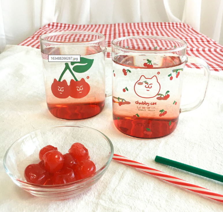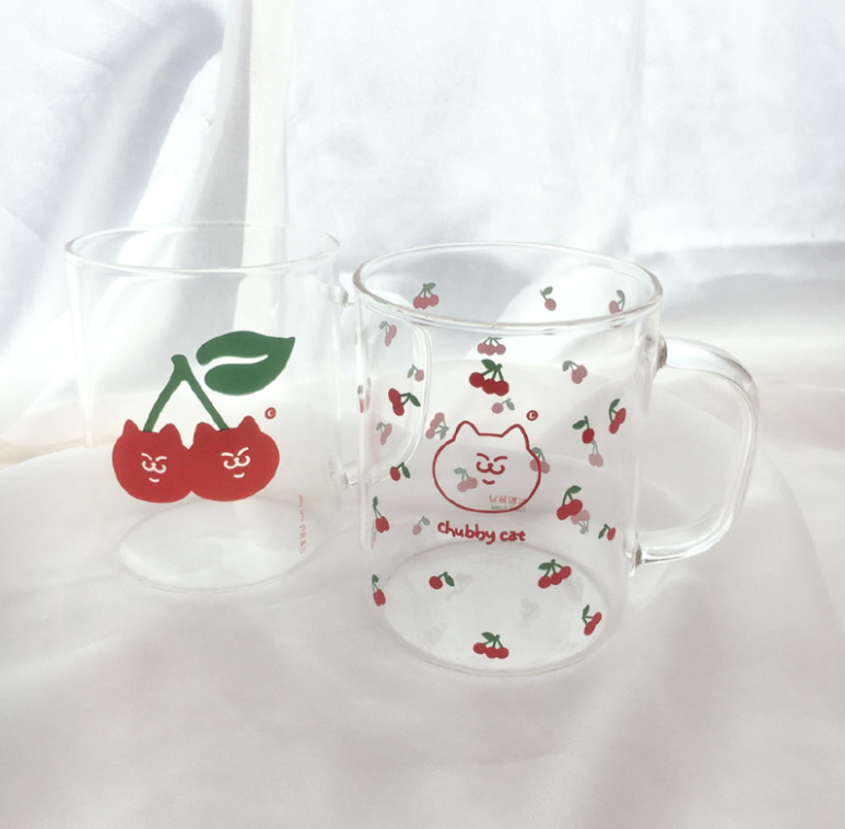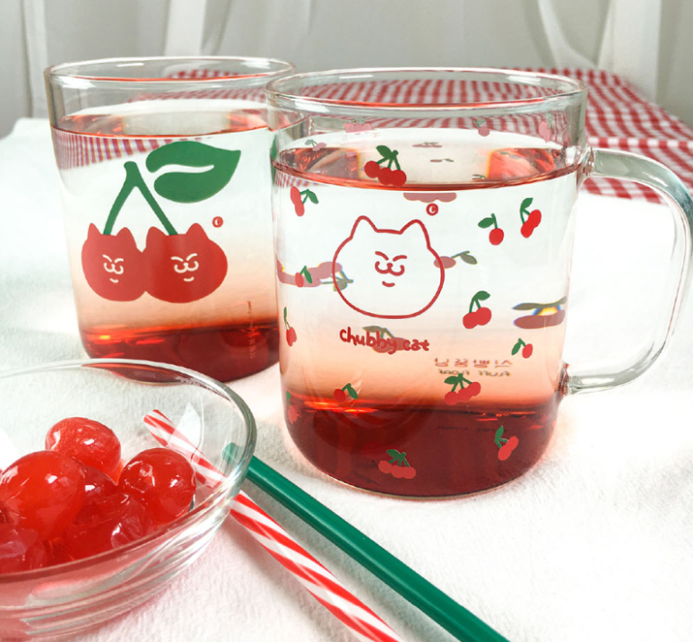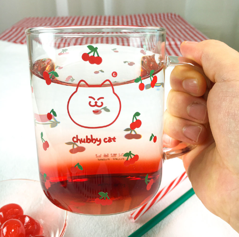 식빵뚱냥의 체리패턴 내열유리 머그컵