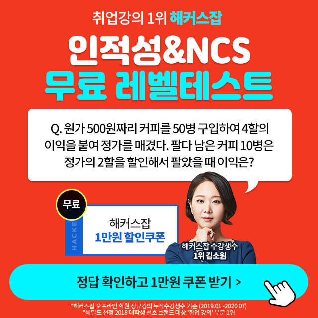 해커스잡 NCS&인적성 무료레벨테스트