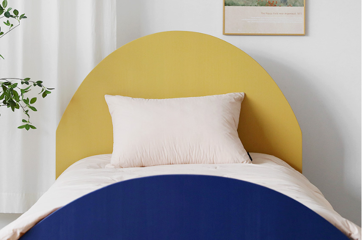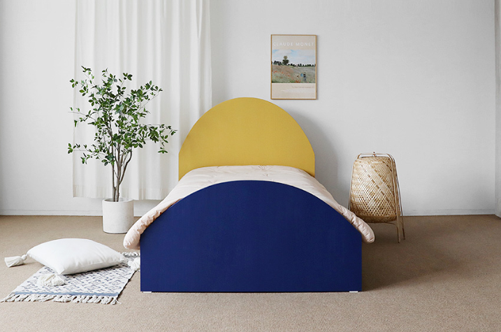 헤드와 풋보드 디자인을 동그라미를 반으로 나눈 듯한 반구형태로