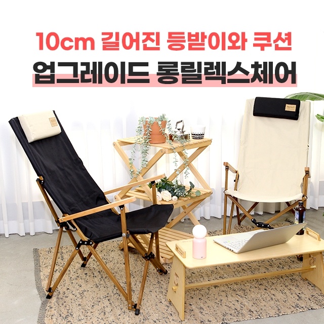 우드 감성으로 업그레이드 3세대 롱 릴렉스 체어 10cm 더 길어진 등받이와 탈부착 목쿠션으로 머리까지 편안한 캠핑의자 공식 페이지에서 구입하고 리뷰 작성 시 추첨을 통해서 스타벅스 텀블러