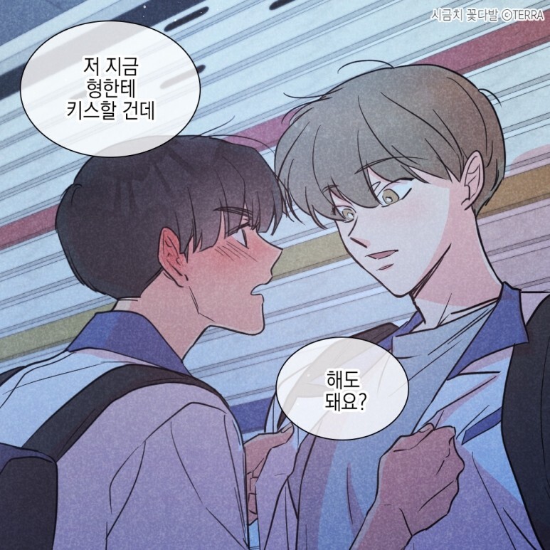 시골 학교로 전학 온 지우. 기분 좋게 새출발 할 수 있을 것 같았던 것도 잠시, 정성껏 가꾼 꽃밭이 엉망이 된 걸 발견하는데... 미인공X상처수 BL웹툰[시금치 꽃다발]