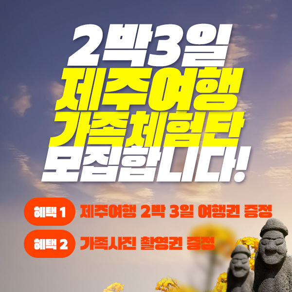 제주도 왕복 항공권(2인) 제공(tax미포함)