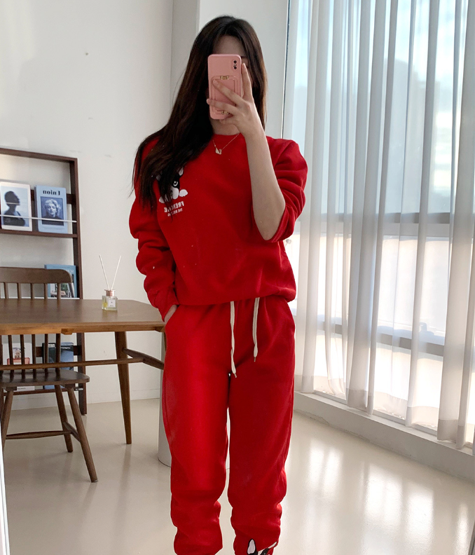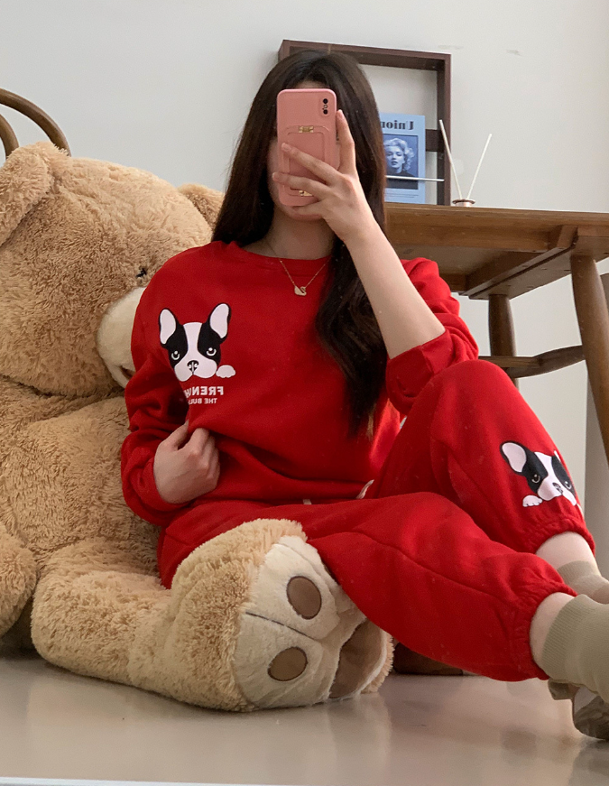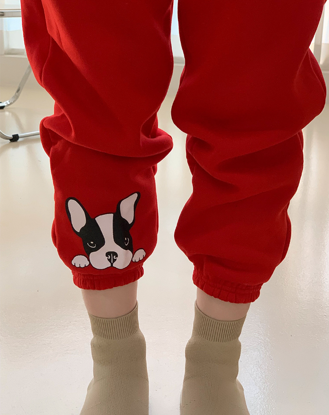 여성 기모 불독 캐릭터 맨투맨 티셔츠 조거 밴딩 팬츠