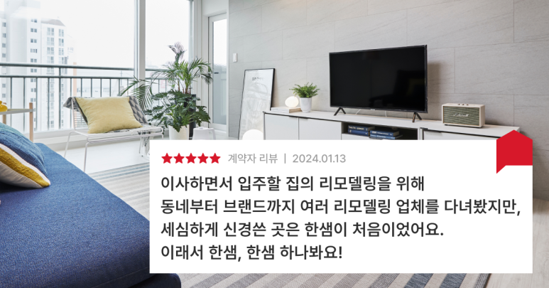 지금 살고 있는 집이 전반적으로 노후도 되고, 분위기를 바꿔보고 싶다는 생각에 인테리어 결심하셨다면? 한샘 리하우스는 일정 수립부터 자재나 업체 관리, 품질 관리까지 투명한 견적과 확실