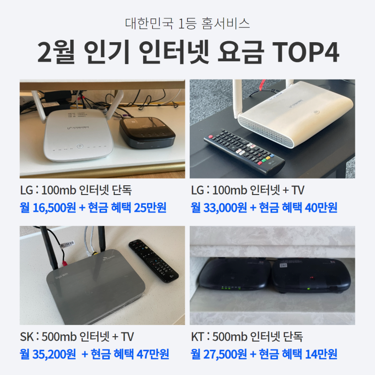 KT, SKT, LG 인터넷 가입 최저 요금 알아보세요.