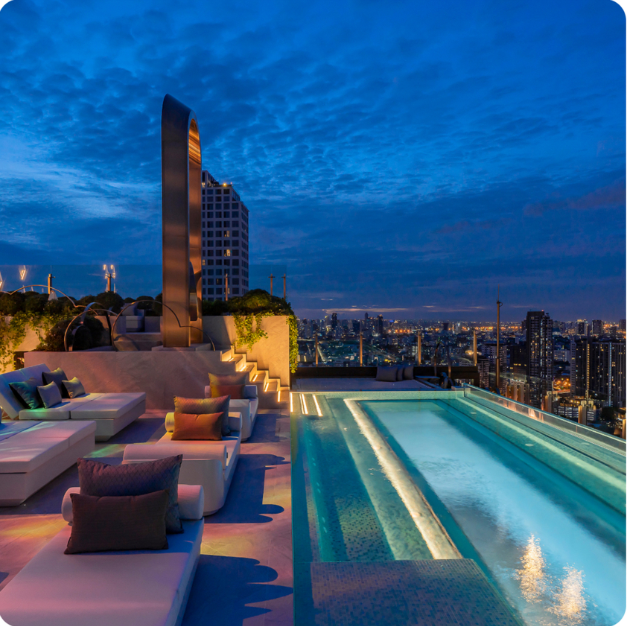 도심이 내려다 보이는 루프탑 수영장을 한적하게 즐기실 수 있습니다.